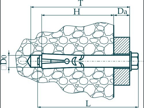 Используется для крепления тяжеловесных конструкций к полнотелому бетону, природному строительному камню, полнотелому кирпичу.
