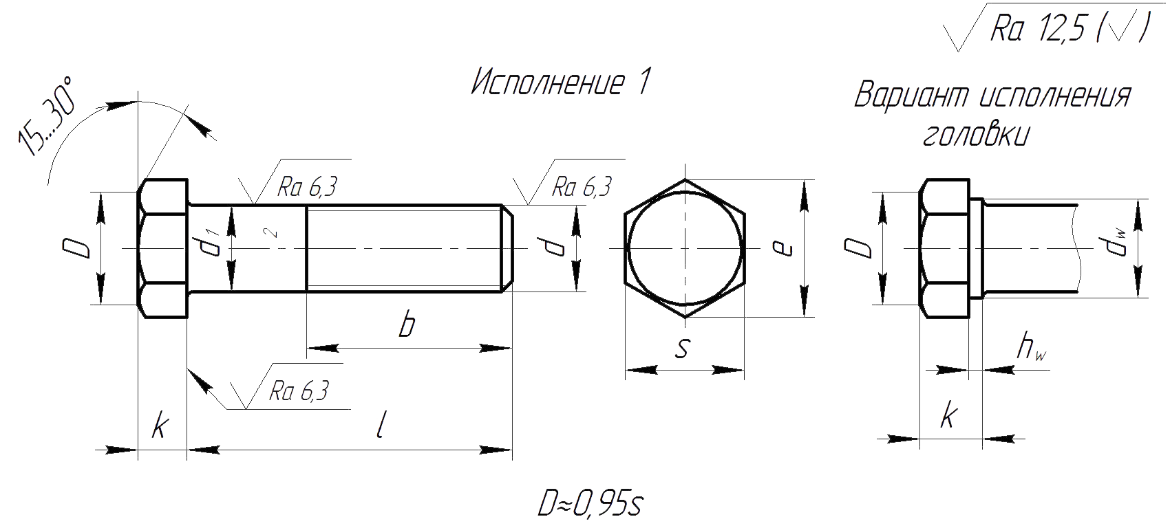 Может изготавливаться из следующих марок стали: 10кп, 10, 20, 20кп, 20Г2Р, 30ХР, 35, 40Х. Болт выполняется с неполной резьбой, возможно изготовление с полной резьбой