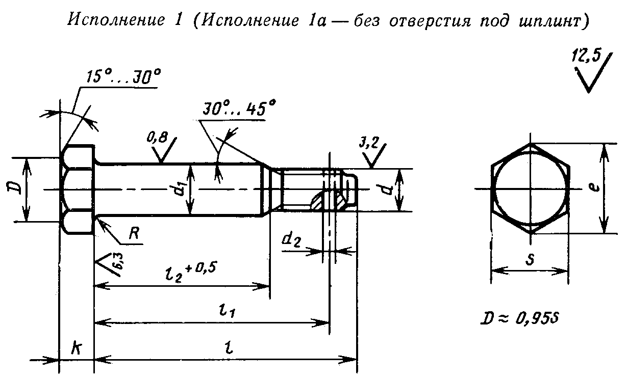 Болт с шестигранной с уменьшенной головкой в соответствии с ГОСТ 7817-80 поставляется с номинальным диаметром резьбы М6-М48, классом точности А и для отверстий из-под развертки.