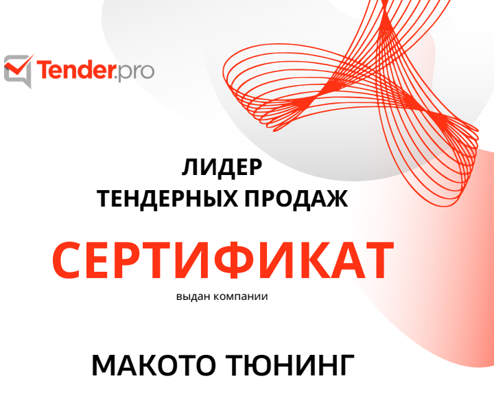 Мы рады сообщить, что наша компания получила сертификат «Лидер тендерных продаж» за эффективное участие в тендерах на ЭТП Tender.Pro и достижение высоких коммерческих показателей. Эта награда подтверждает стабильность наших результатов и профессиональный подход к работе в сфере закупок.